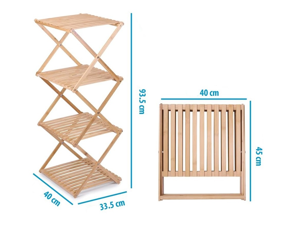 Επιδαπέδια Ραφιέρα Μπάνιου Alpina Αναδιπλούμενη Με 4 Ράφια (40x33.5x93.5cm) Ξύλο Μπαμπού