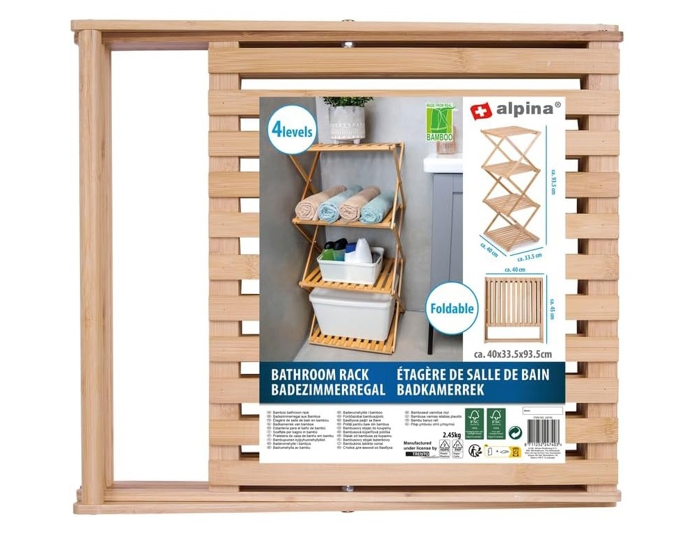 Επιδαπέδια Ραφιέρα Μπάνιου Alpina Αναδιπλούμενη Με 4 Ράφια