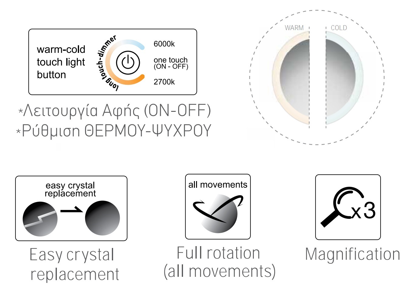 - Λειτουργία αφής (On/Off) με στιγμιαίο πάτημα
