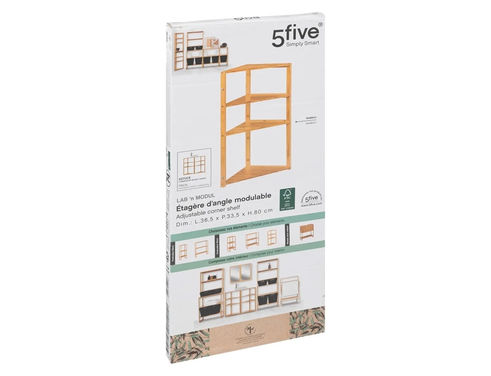 Γωνιακή Επιδαπέδια Ραφιέρα Μπάνιου 5Five (37x34x80) Ξύλο Μπαμπού