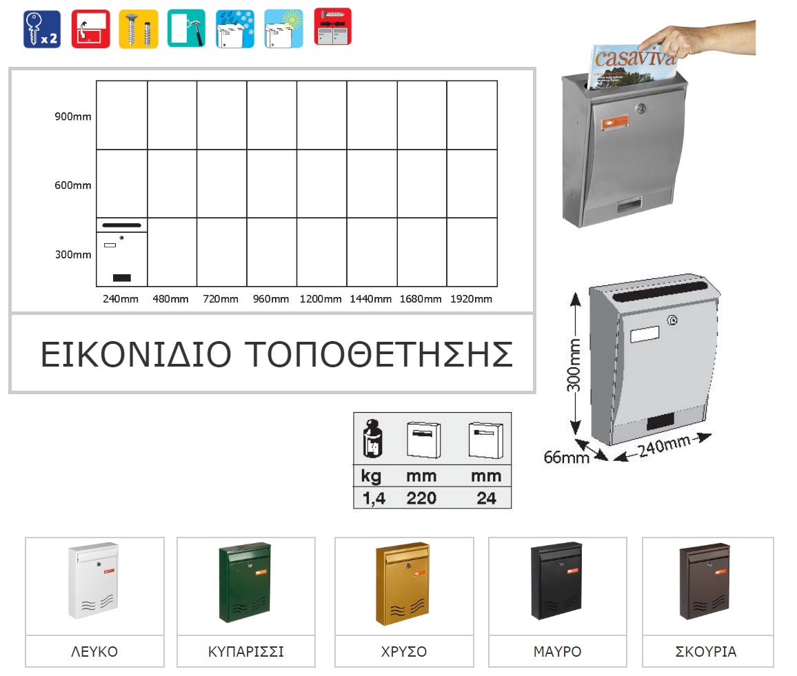 Γραμματοκιβώτιο πολυκατοικίας Viometal Βόνη 308 Λευκό (Και Σε 4 Αποχρώσεις)