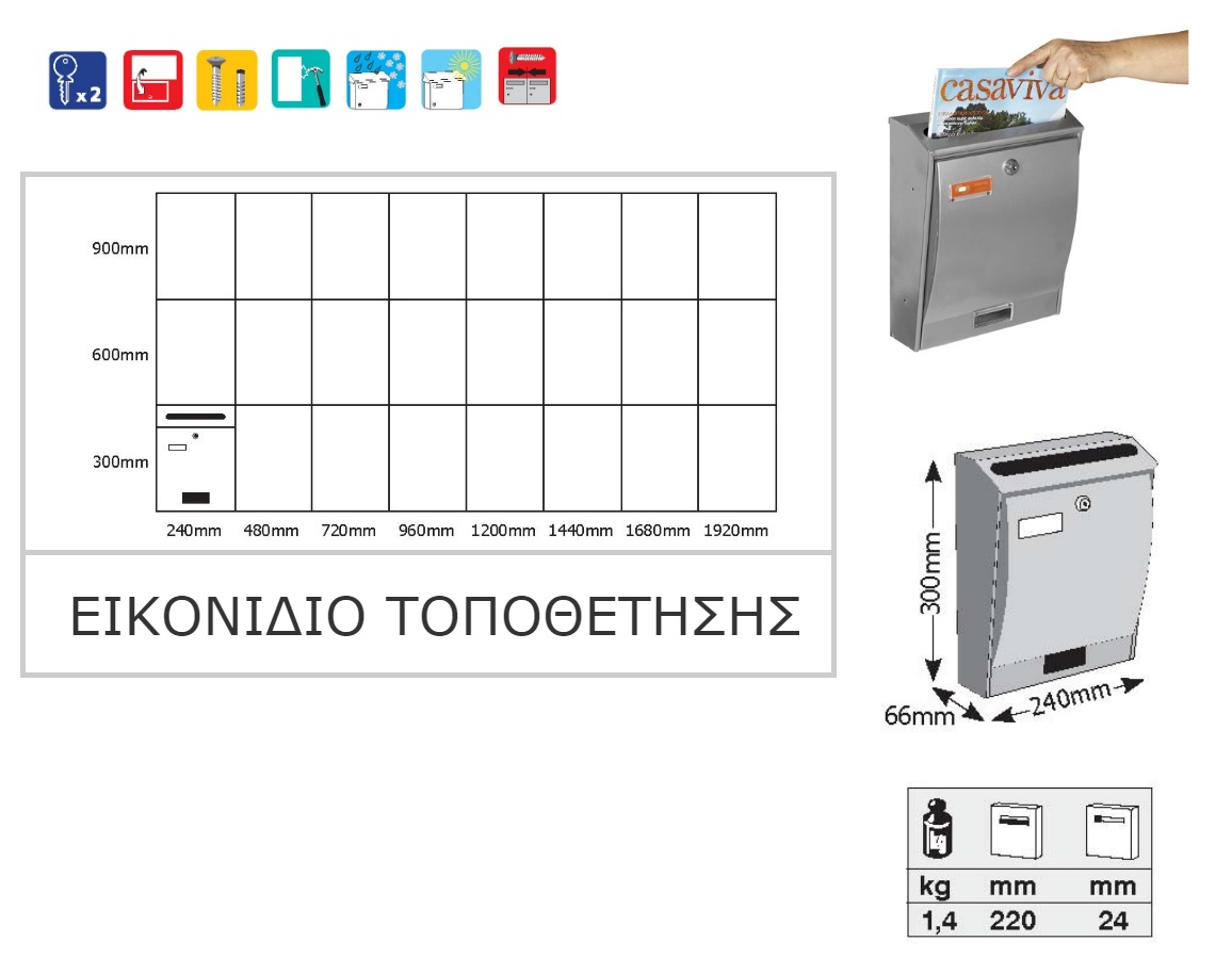 Γραμματοκιβώτιο Πολυκατοικίας Viometal Βόνη 308 Ανοξείδωτο