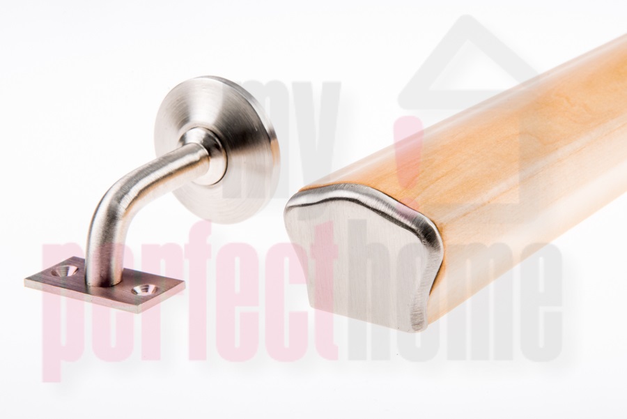 Ξύλινη κουπαστή σκάλας τύπου Ω σε φυσικό με νίκελ ματ εξαρτήματα