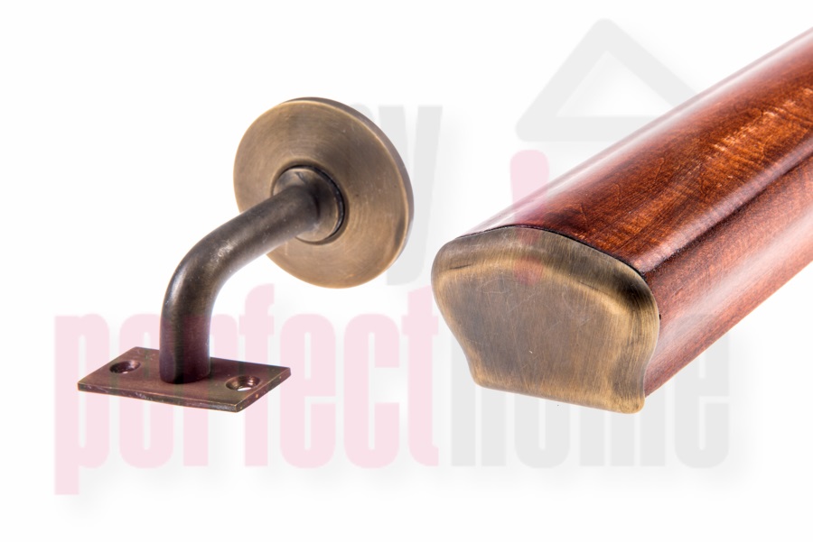 Ξύλινη κουπαστή σκάλας τύπου Ω σε κερασιά με μπρονζέ εξαρτήματα