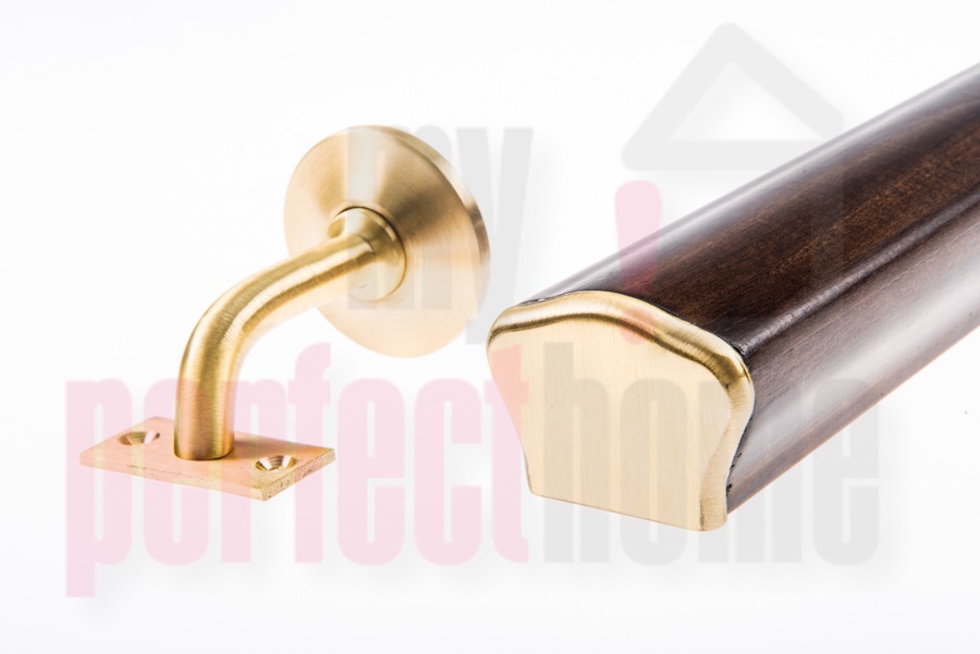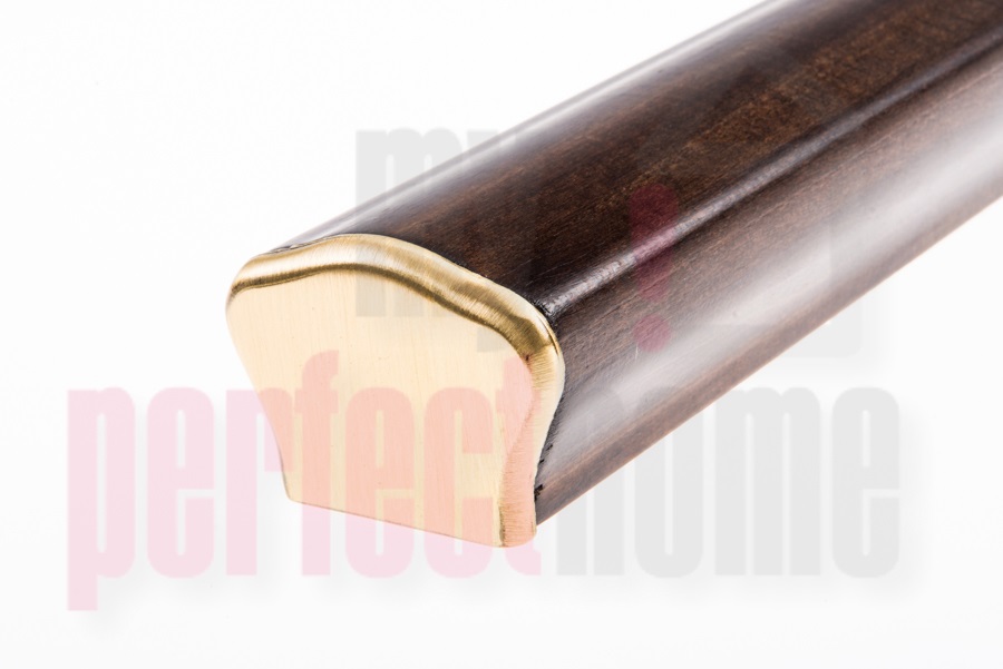 Ξύλινη κουπαστή σκάλας τύπου Ω σε καρυδί με χρυσό ματ εξαρτήματα