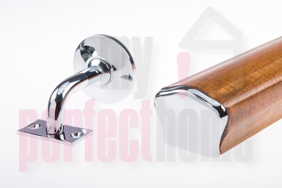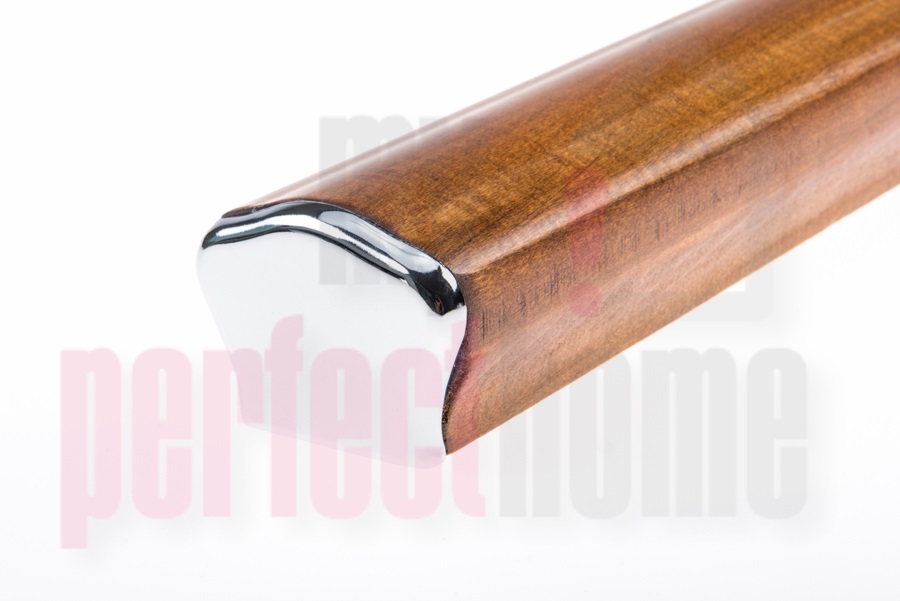 Ξύλινη κουπαστή σκάλας τύπου Ω σε μελί με χρώμιο εξαρτήματα