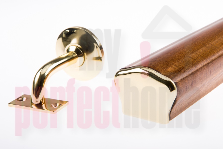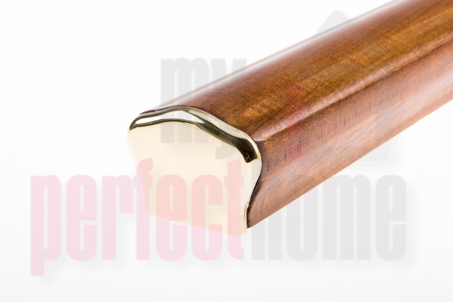 Ξύλινη κουπαστή σκάλας τύπου Ω σε μελί με χρυσά εξαρτήματα