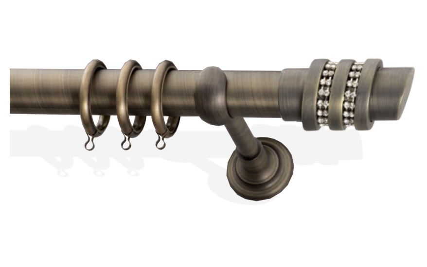 Μεταλλικά Κουρτινόξυλα Frans Φ35 Three Rings Strass Αντικέ 160mm (Και Σε 8 Διαστάσεις, Μονό ή Διπλό)