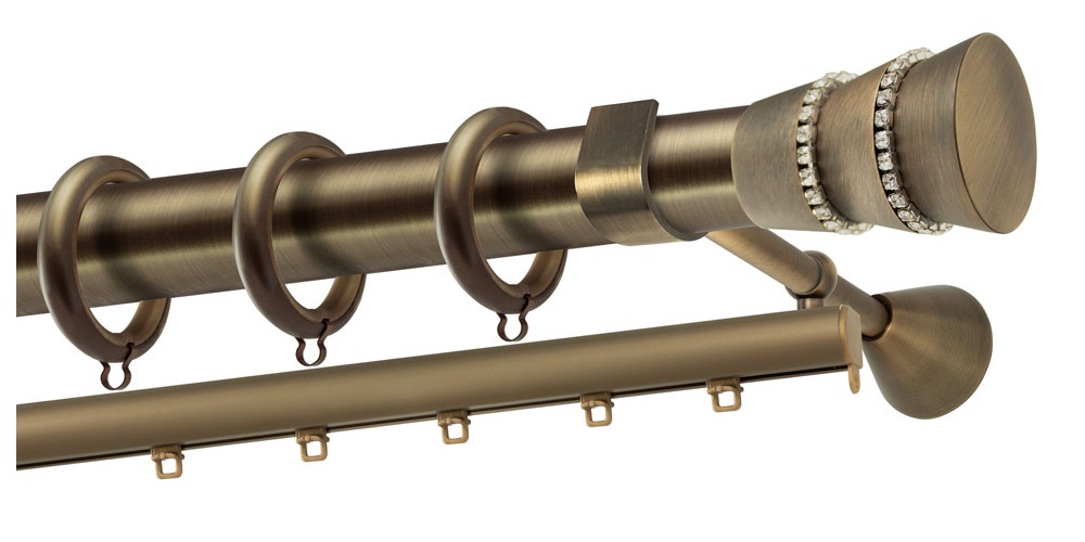 Κουρτινόξυλα Μπρονζέ Φ35 Λευκάδα Strass 44-3516-18 Αντικέ Ματ
