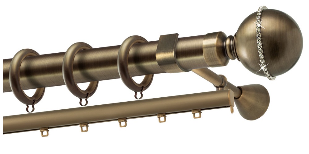 Κουρτινόξυλα Μπρονζέ Φ35 Ρόδος Strass 29-3516-18 Αντικέ Ματ