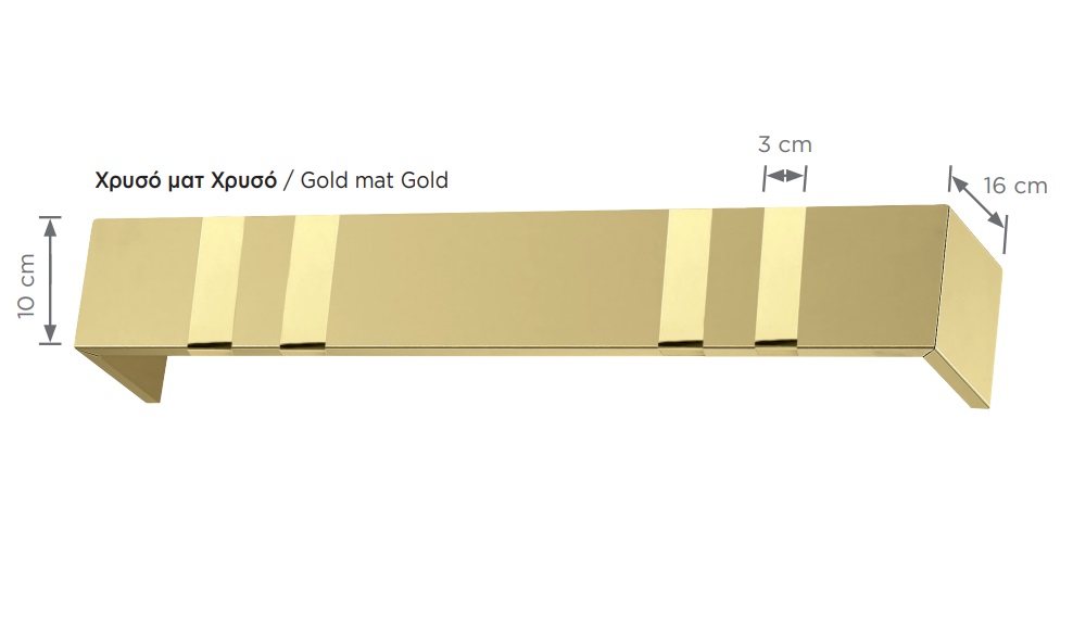 Μεταλλική Mετόπη Κουρτίνας Demo 22-134 Χρυσό Ματ-Χρυσό Με Διπλό Μεταλλικό Σιδηρόδρομο (Επιθυμητή Διάσταση)