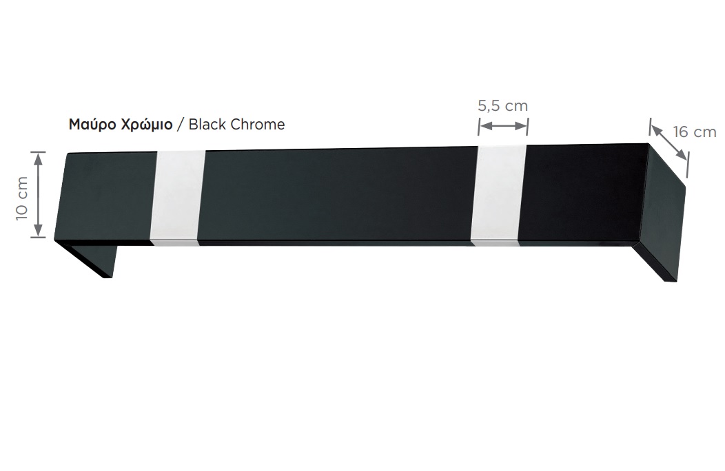 Μεταλλική Mετόπη Κουρτίνας Demo 22-143 Μαύρο-Χρώμιο Με Διπλό Μεταλλικό Σιδηρόδρομο (Επιθυμητή Διάσταση)