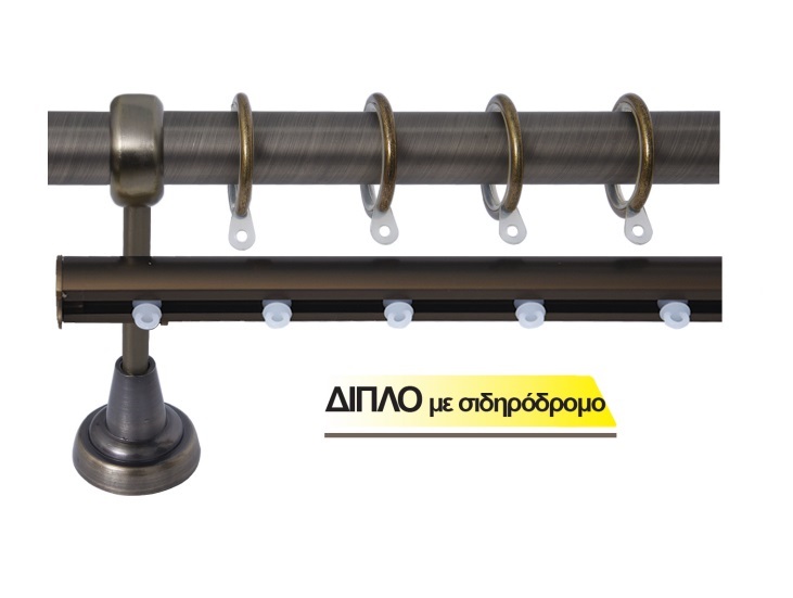 Οικονομικό μεταλλικό κουρτινόξυλο Φ25, σε μπρονζέ, σειρά Γ, Νο 7