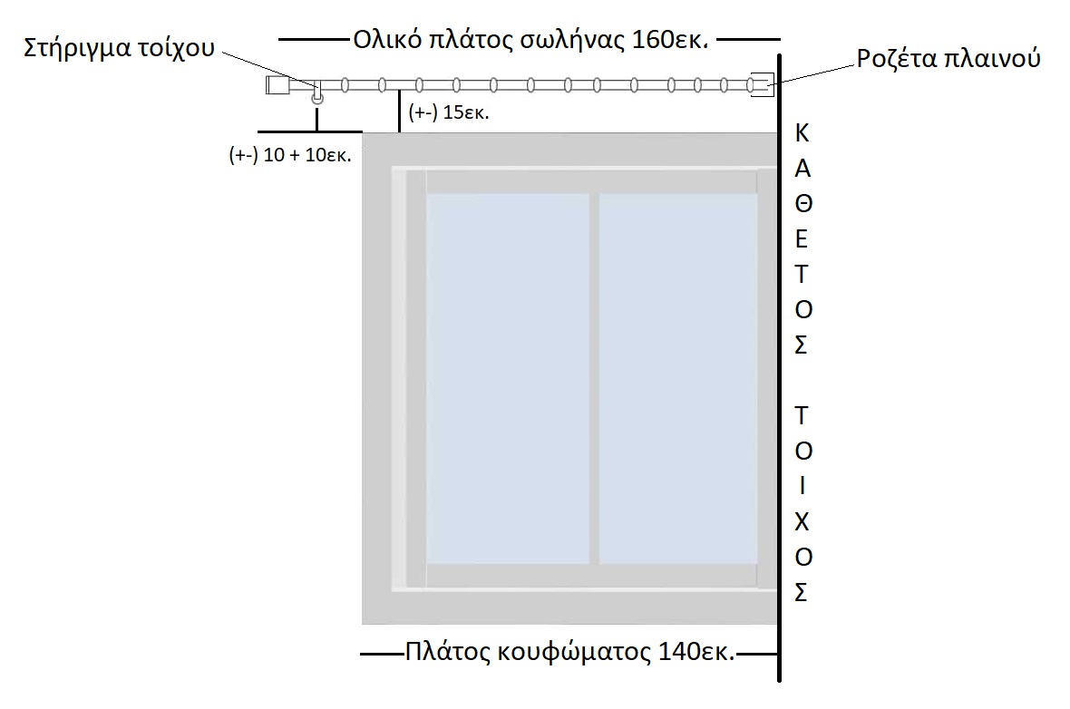 Το στήριγμα θα πρέπει να βιδώσει 10εκ. έξω από το τελείωμα του κουφώματος προκειμένω η κουρτίνα να το καλύπτει επαρκώς