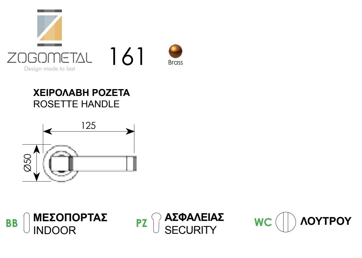 Ορειχάλκινα Πόμολα Πόρτας Χειρολαβή Με Ροζέτα Ζωγομετάλ 161 Ορο Ματ-Ορο