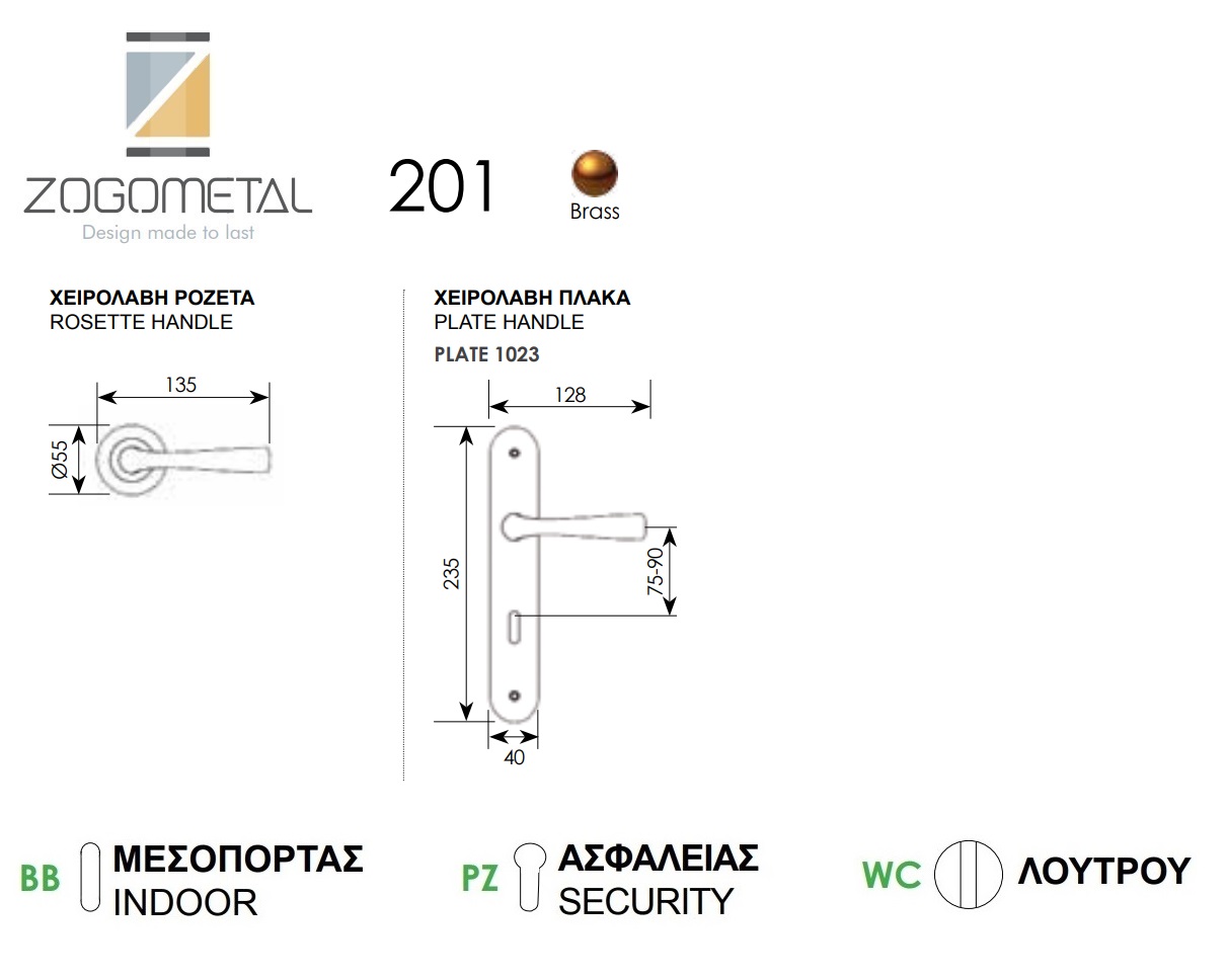 Πόμολο πόρτας Ζωγομετάλ 201, εργονομία, λειτουργικότητα, αισθητική και υψηλή ποιότητα κατασκευής