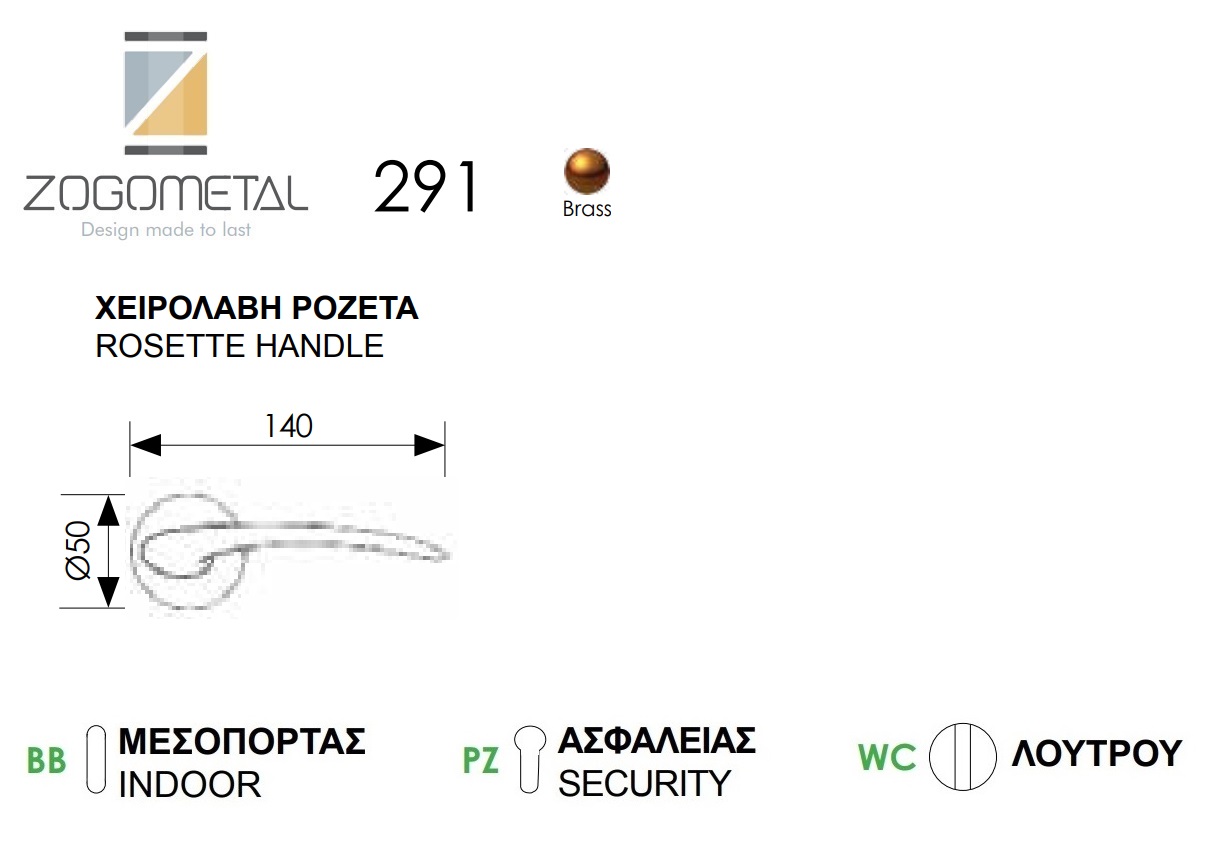 Πόμολο πόρτας Ζωγομετάλ 291, εργονομία, λειτουργικότητα, αισθητική και υψηλή ποιότητα κατασκευής