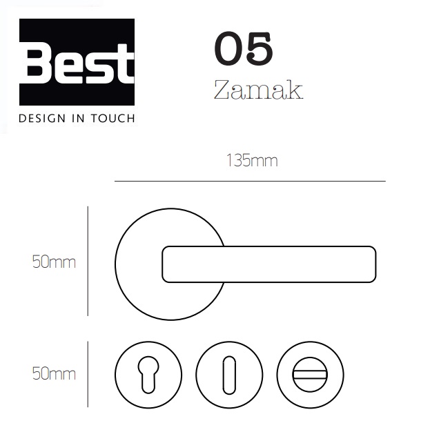 Πόμολο πόρτας Best 05 με ροζέτες, απλό σχεδιαστικά αλλά ιδιαίτερα εργονομικό και λειτουργικό