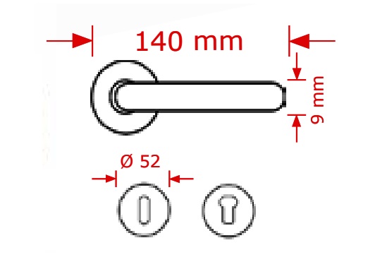 Συσκευασία : Περιλαμβάνει τα πόμολα (ζευγάρι μέσα-έξω), τις 2 ροζέτες του κλειδιού, τον πίρο σύνδεσης και βίδες στερέωσης