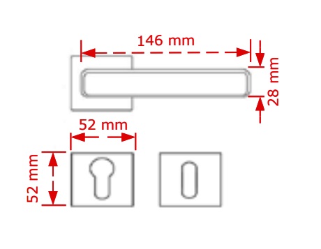 Συσκευασία : Περιλαμβάνει τα πόμολα (ζευγάρι μέσα-έξω), τις 2 ροζέτες του κλειδιού, τον πίρο σύνδεσης και βίδες στερέωσης