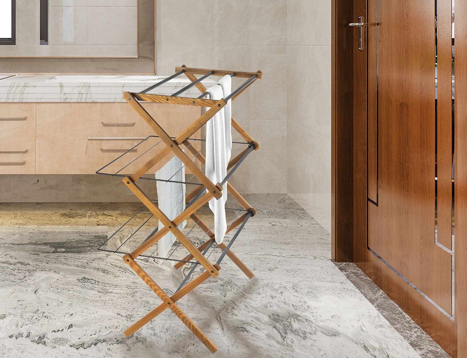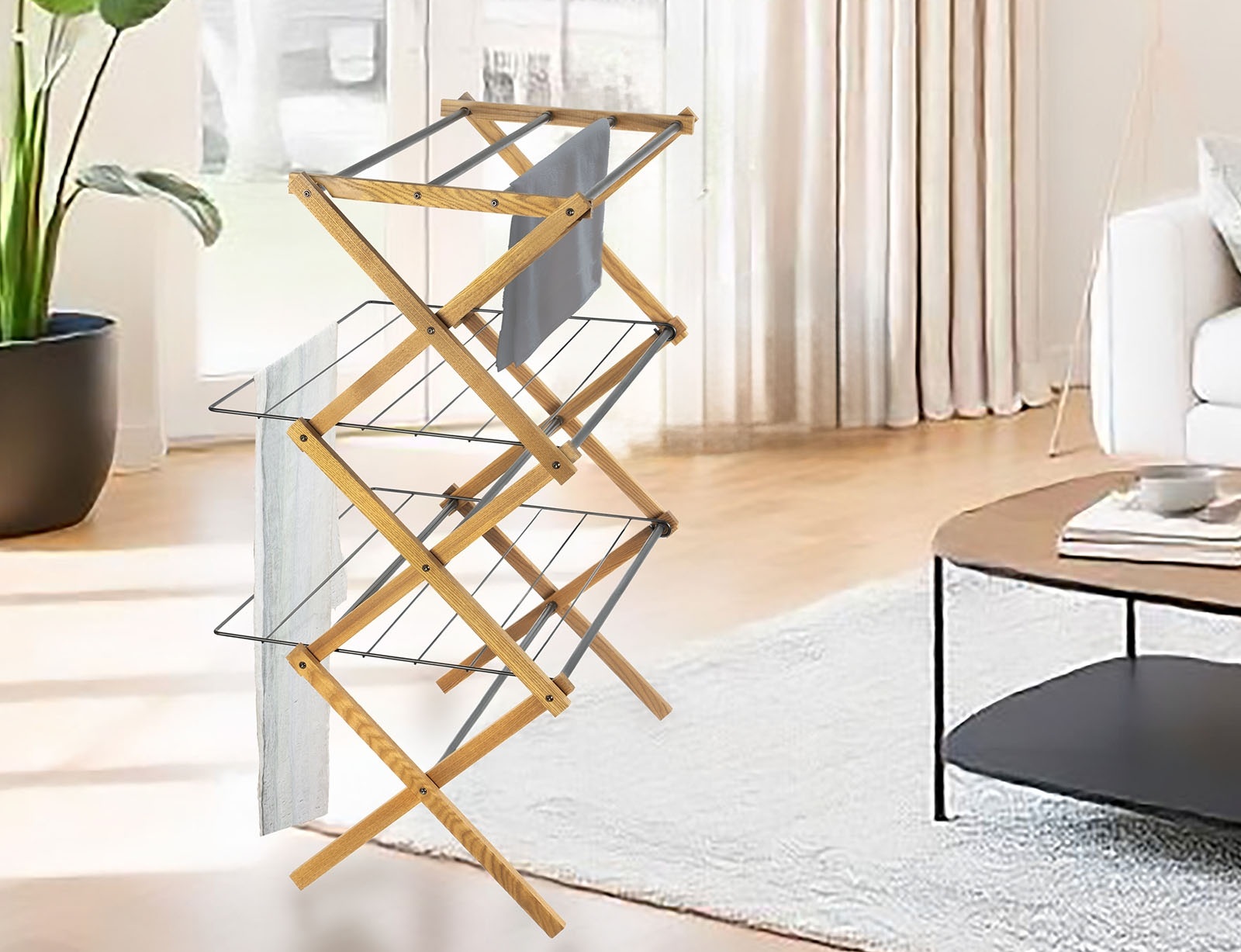 Πτυσσόμενη Απλώστρα Ρούχων Aurora Plus Sepio (Μήκος Απλώματος 9μ.) Ξύλινη 3 Επιπέδων