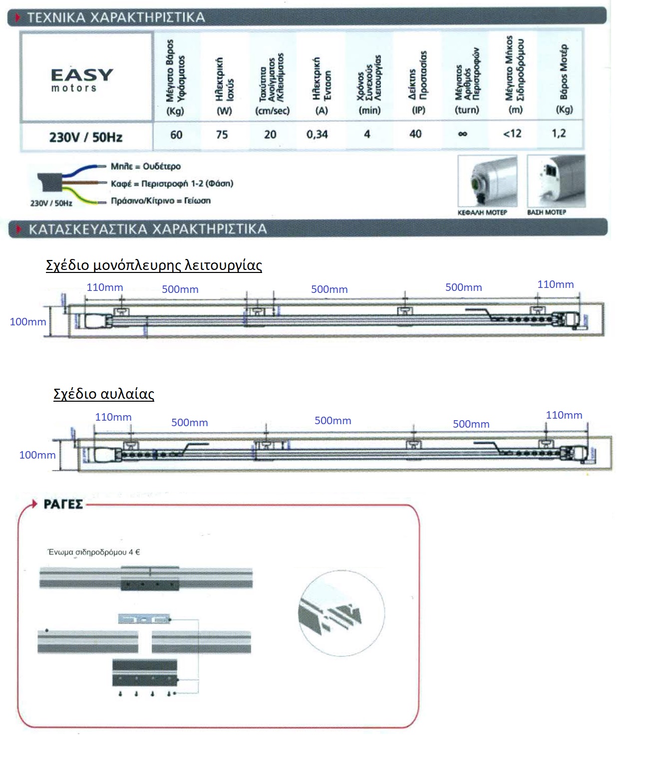 Κίνηση με τηλεχειριστήριο (ασύρματο) ή με μπουτόν τοίχου (ενσύρματο)